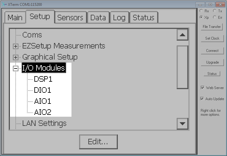 Figure 1‑1. The AIO module that is on the datalogger is identified by the letter A in the XTerm software.