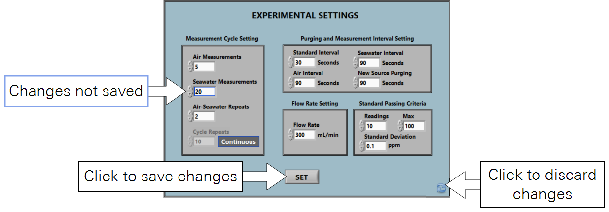 - Air-Seawater Repeats: The number of times to repeat the air and seawater measurements before measuring the next group of standards.