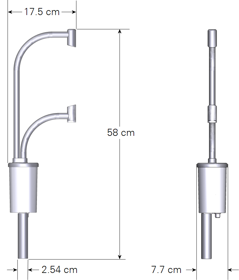 - Mount: 1 inch (2.54 cm) diameter post; compatible with 1 inch (2.54 cm) crossover fittings