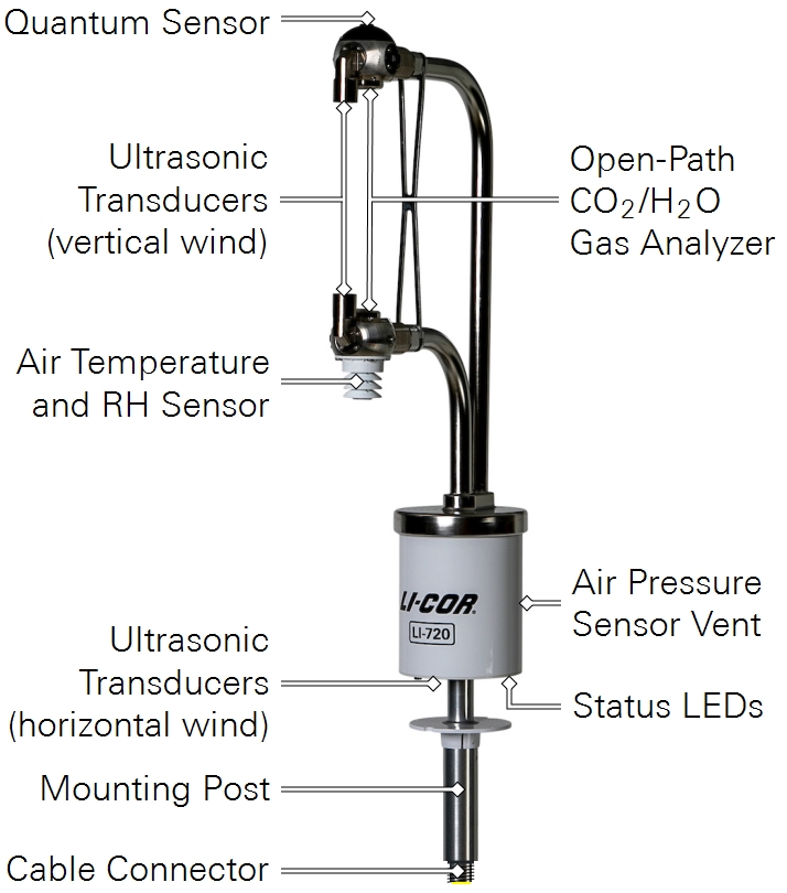 Welcome, and thank you for your purchase of the LI-720 Carbon Flux Sensor. The LI-720 reports the total transport of carbon dioxide gas and evapotranspiration over an area, along with other biological and meteorological parameters. The LI-720, when paired with an IoE Module, is a Carbon Node on LI-COR Cloud.
