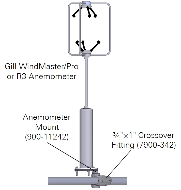 Basic installation for the Gill WindMaster/Pro or R3, RM Young 81000x, and Metek Cage in Figure 4‑5.