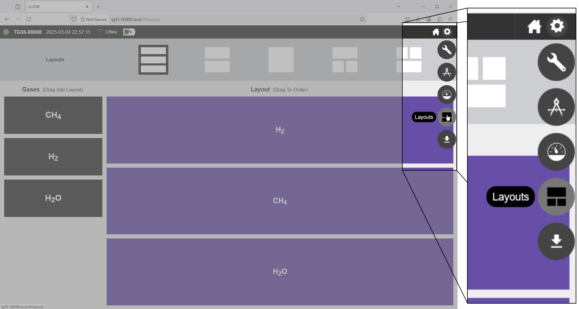 You can customize the graphical layout. If, for example, you are only interested in viewing measurements of a single gas or isotopic species, you can alter the layout to suit your preferences.