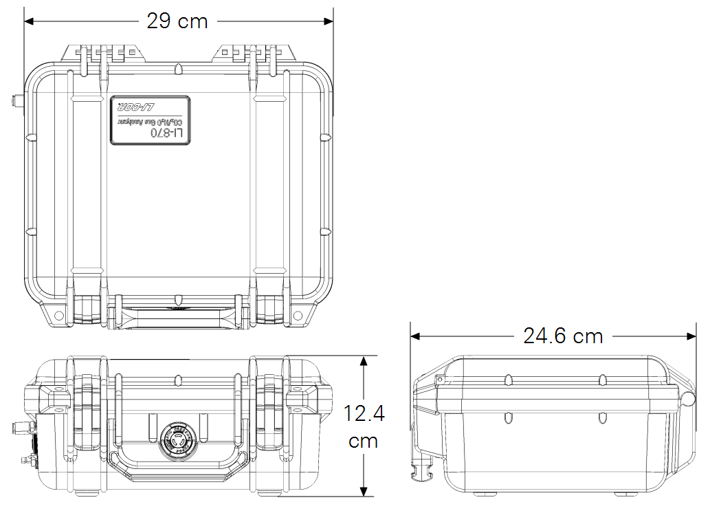 - Cable Connectors: Sealed power and USB-A-to-USB-B for the LI-870