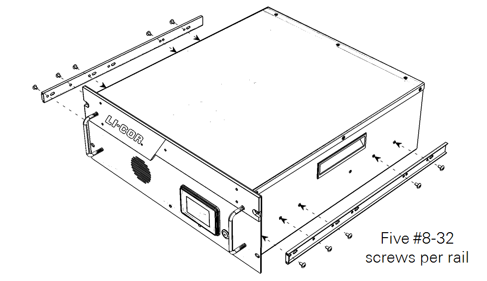 Attach the small slide rails to the analyzer with five 8-32 button-head machine screws each.