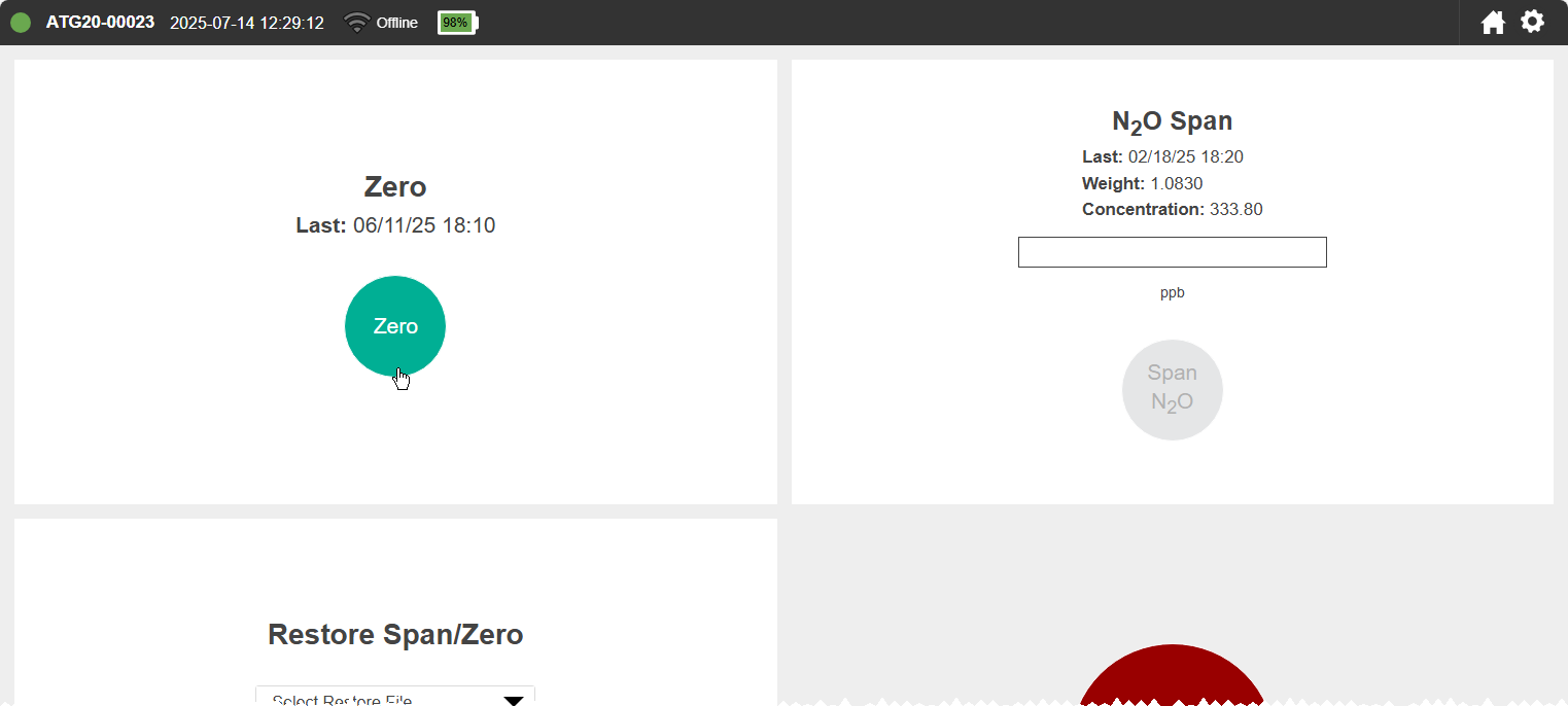 In the event that an attempt to zero or span fails to work as intended, you can restore a previous zero or span under Restore Span/Zero. Select the file and click Restore.