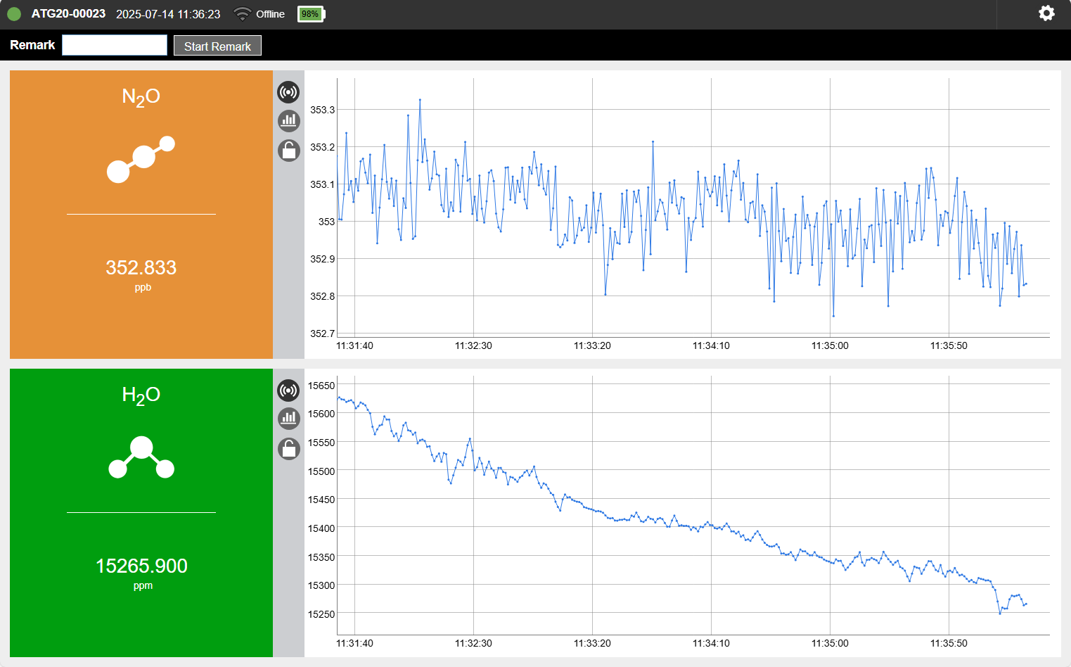 The instrument supports two operating configurations that can be set in the interface: Standard and High Altitude.