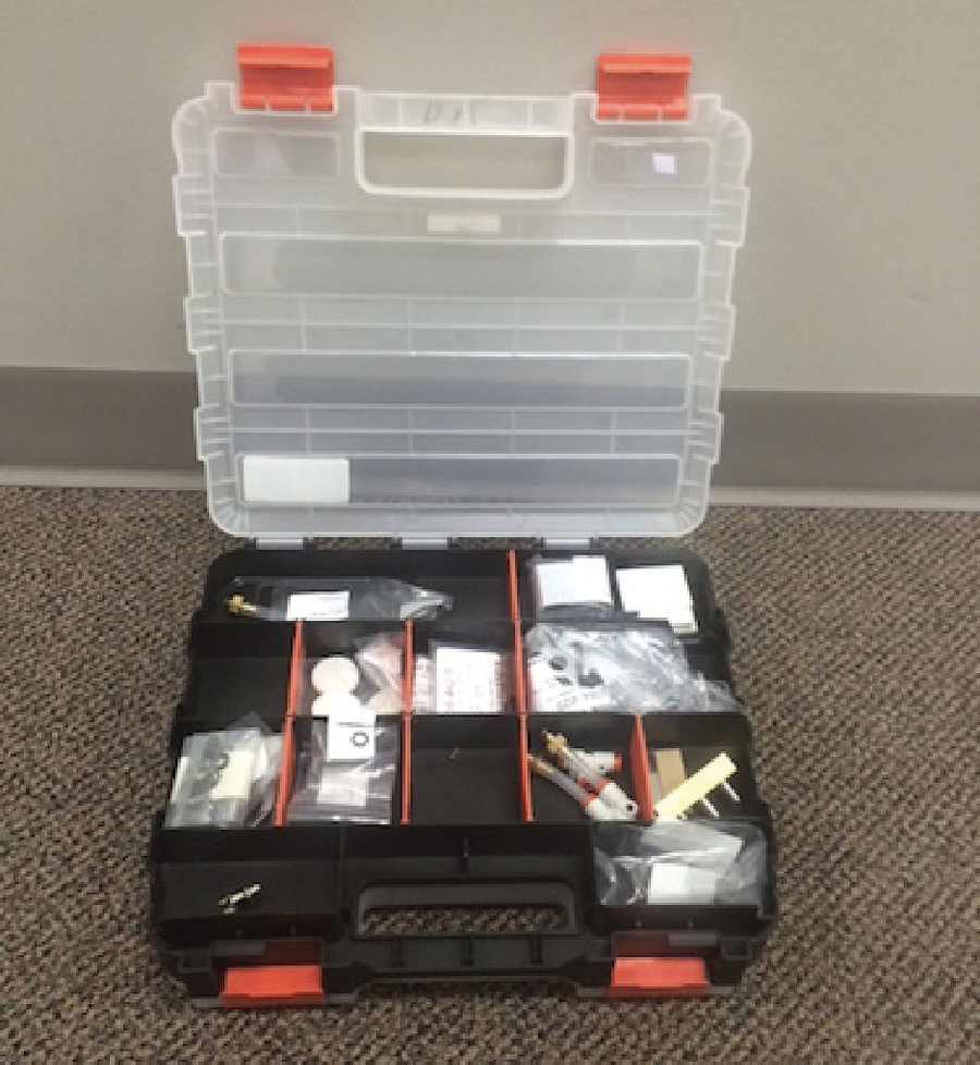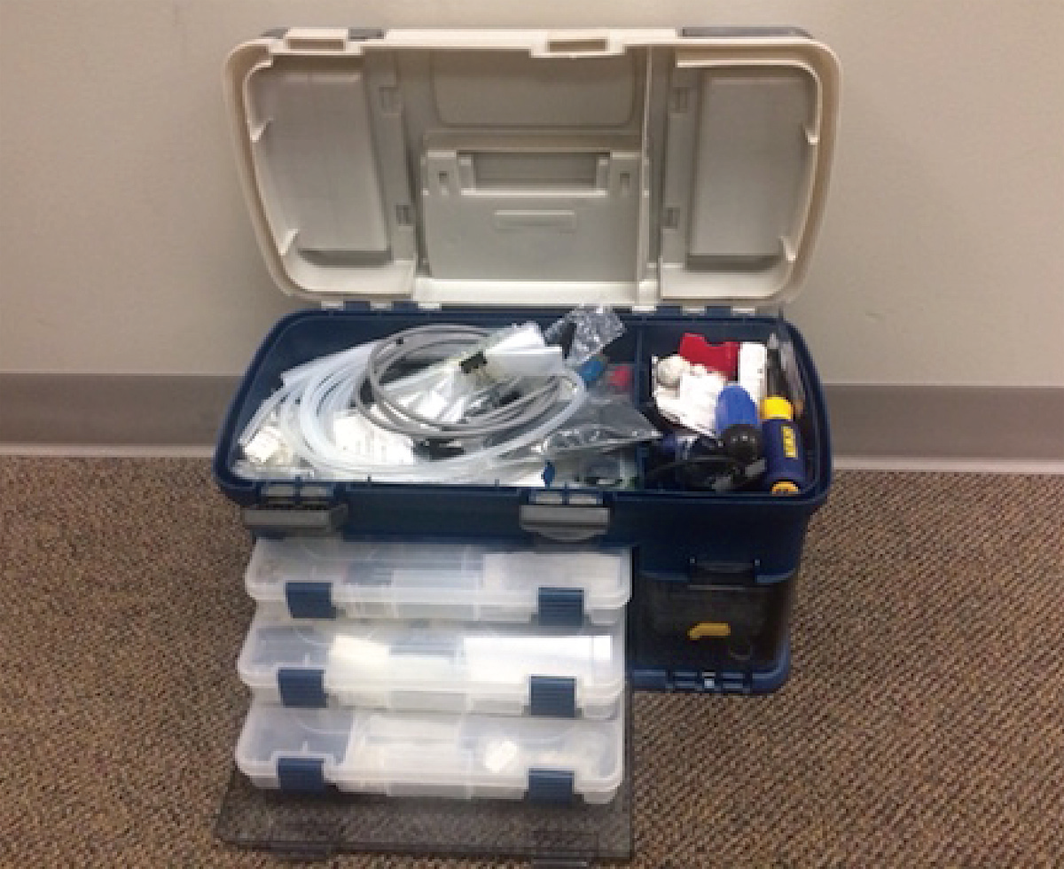 Once your list of items is developed, it may be more convenient to carry your relevant spares with you in something other than the sturdy cardboard box they arrived in. A small toolbox or fishing tackle box is ideal for spares-carrying because it has many small compartments and a few larger compartments. You may even wish to develop two toolkits: one for a multi-day trip to the field and one for a daily jaunt into science.
